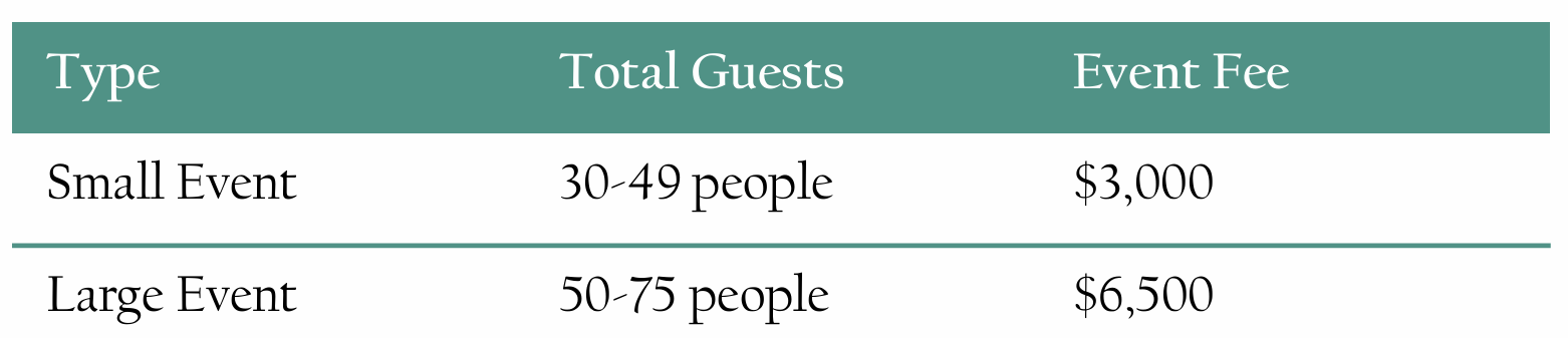 The Old Church of Pinehurst can host events for up to 75 guests. An additional event fee is added to the nightly rental rate, depending on the total number of attendees.